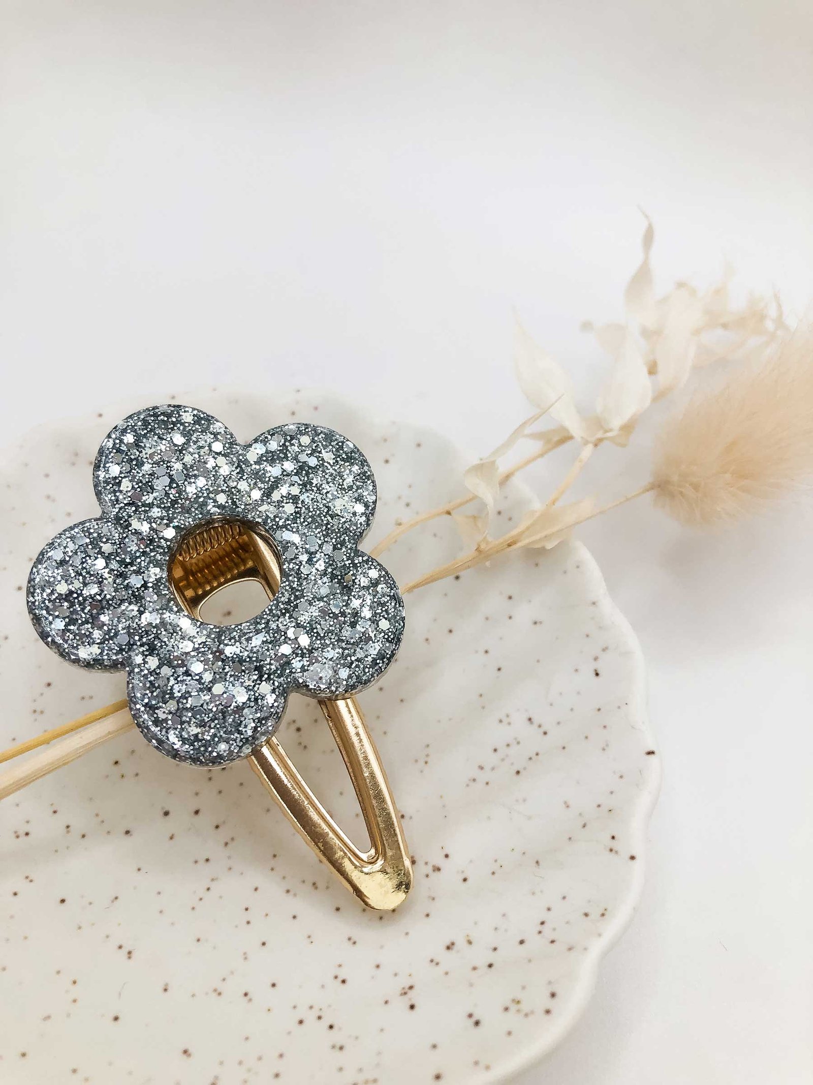La Barrette Fleur Argenté se distingue par ses reflets argentés et son design floral délicat. Elle capte la lumière à chaque mouvement, offrant un rendu à la fois discret et sophistiqué.