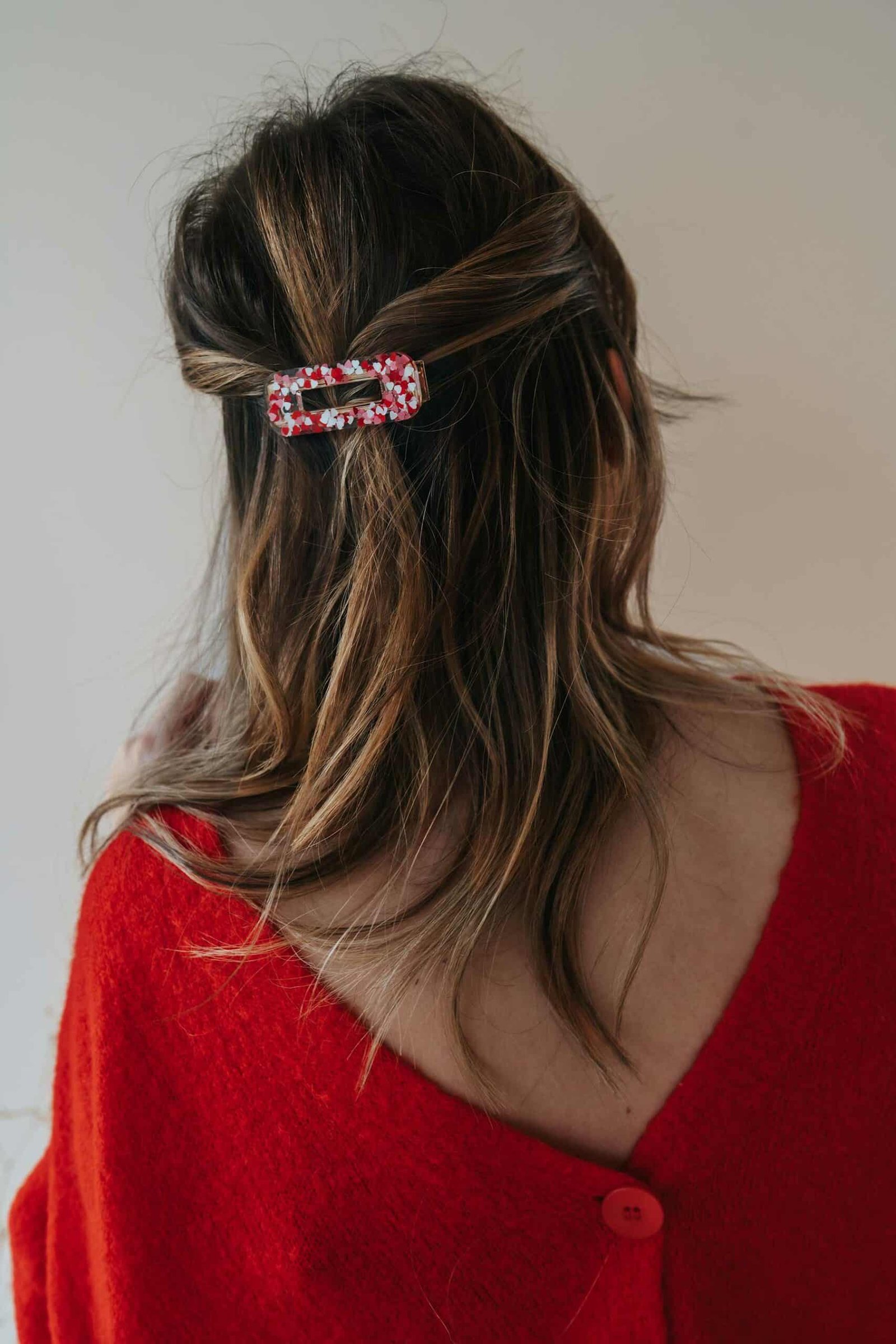 Ces barrettes en résine transparentes apportent une touche de douceur et d’amour à vos coiffures ! Avec leurs petites incrustations de coeurs rouges et roses, elles sont le détail parfait pour égayer ta journée. Légères et élégantes, elles se glissent facilement dans vos cheveux pour un touche de style originale.