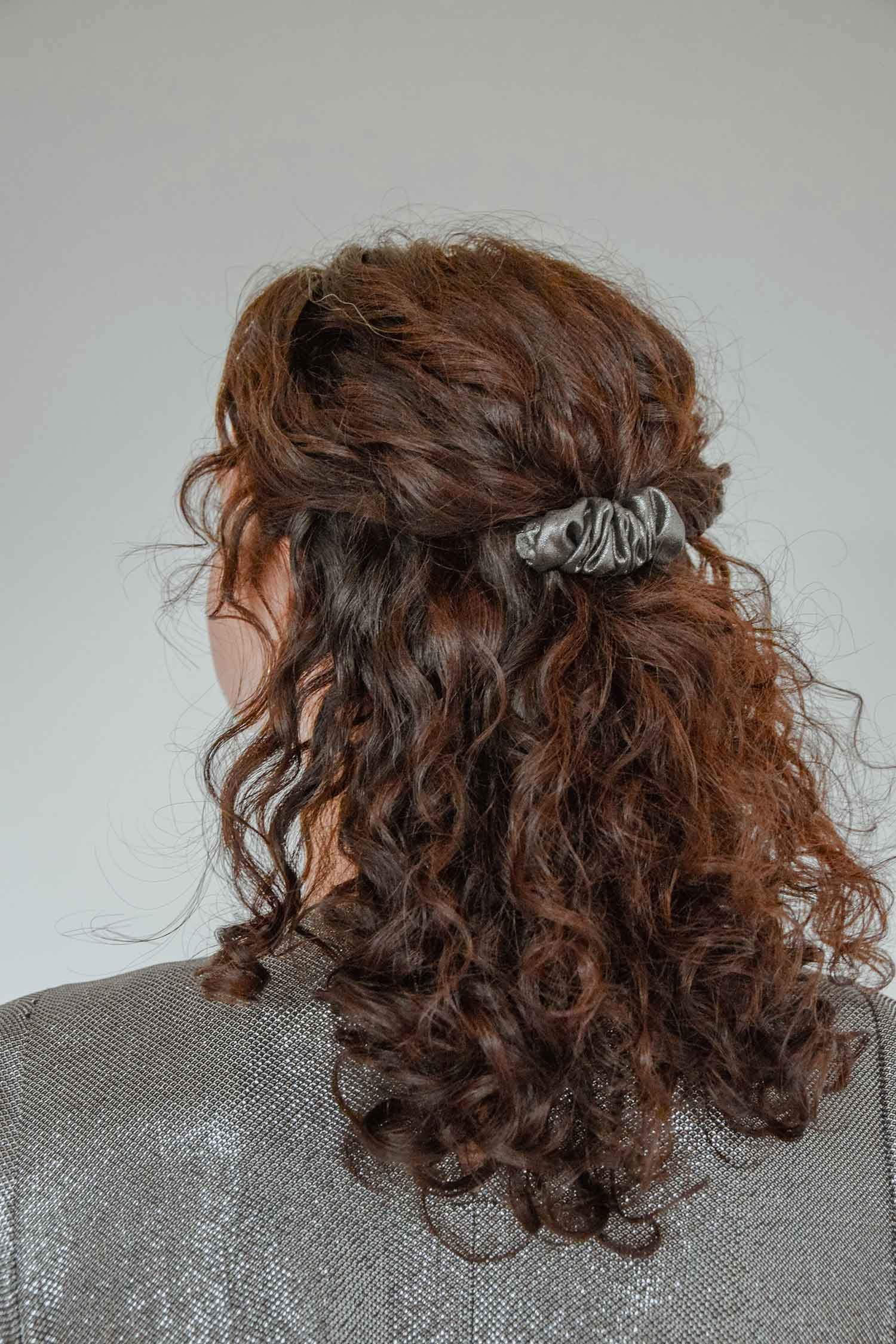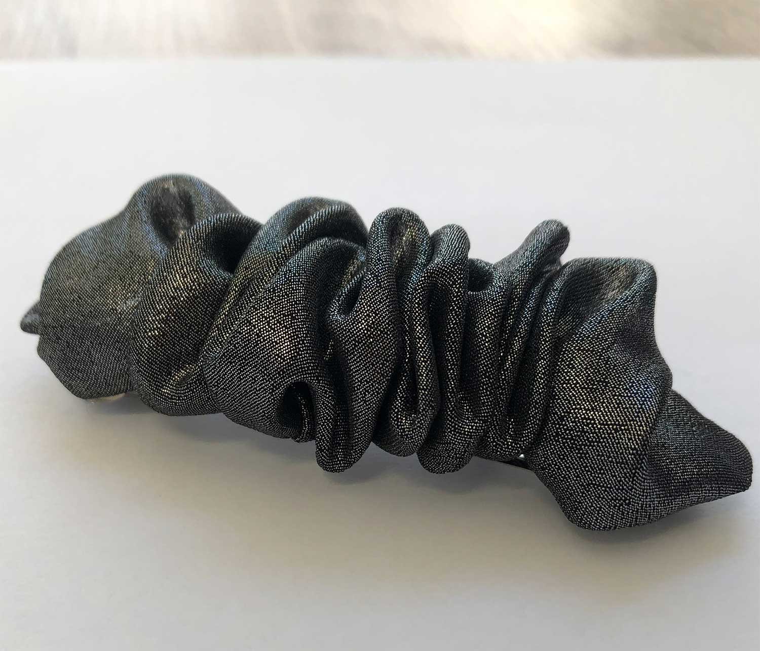La Barrette Scrunchie est réalisée avec une barrette à cheveux en métal argenté.