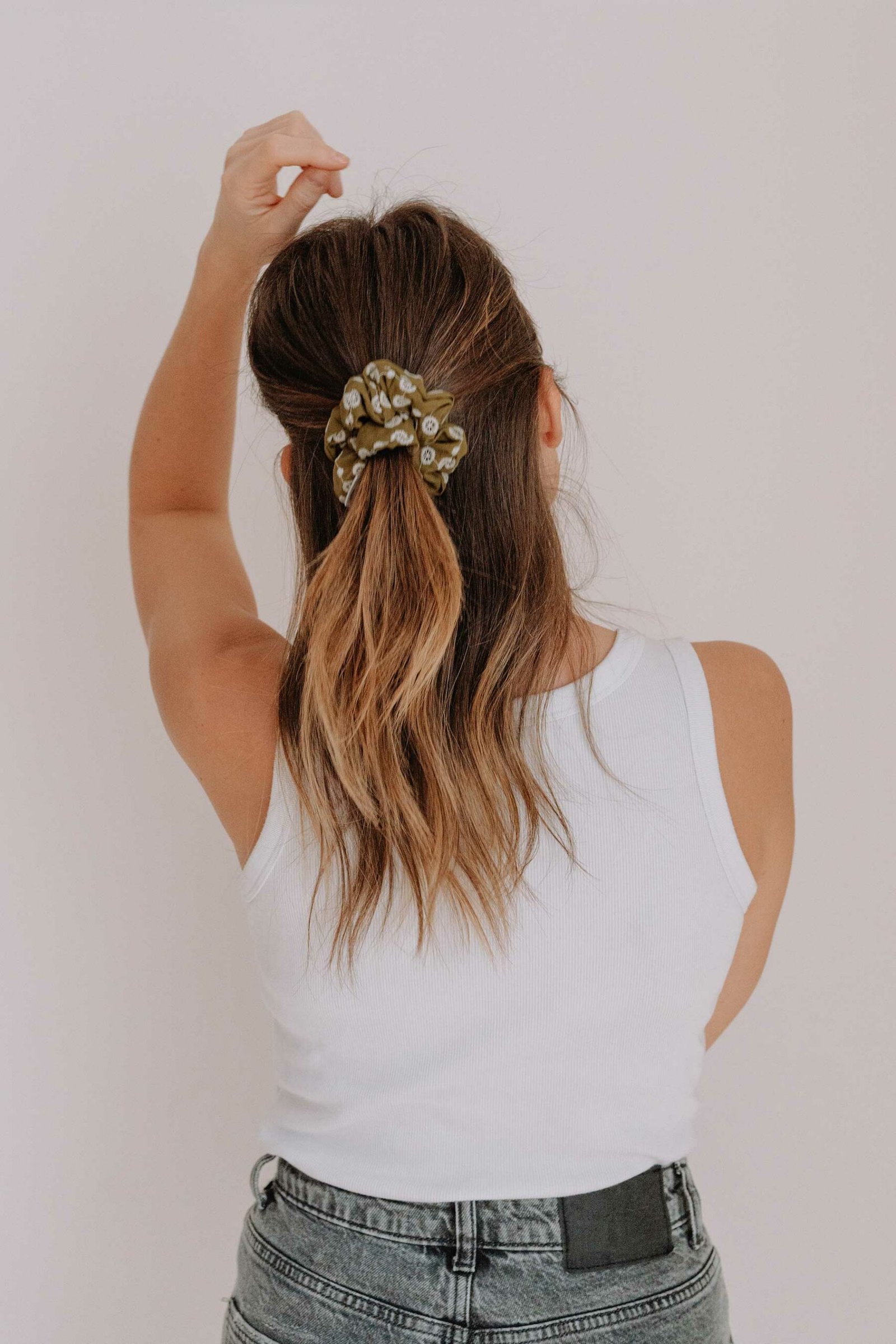 Avec sa teinte vert olive rehaussée de délicats motifs blancs, ce chouchou en broderie anglaise apporte une note à la fois fraîche et intemporelle à vos tenues. Il s’accorde aussi bien à une tenue décontractée qu’à un style plus habillé.