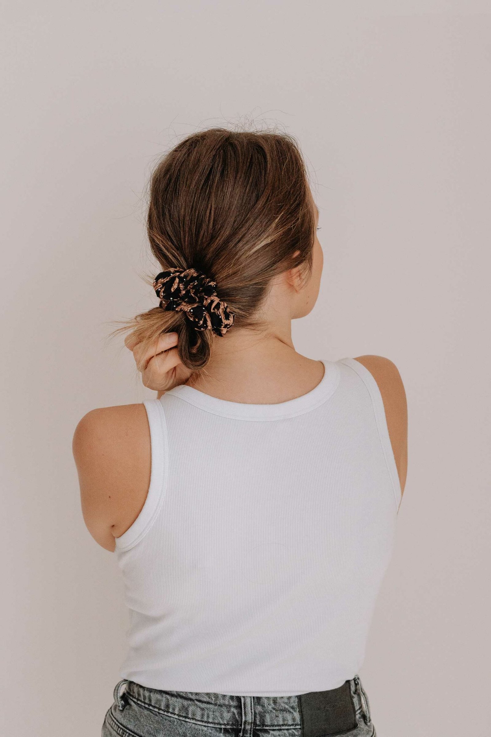 Le Chouchou Lessay se porte facilement dans toutes vos coiffures : chignon bas, queue-de-cheval haute ou demi-attache. Ses reflets discrets attirent la lumière et subliment vos cheveux avec raffinement. Il peut également être porté autour du poignet, comme un bijou textile moderne et délicat. Ainsi, il devient un indispensable à garder toujours sous la main.
