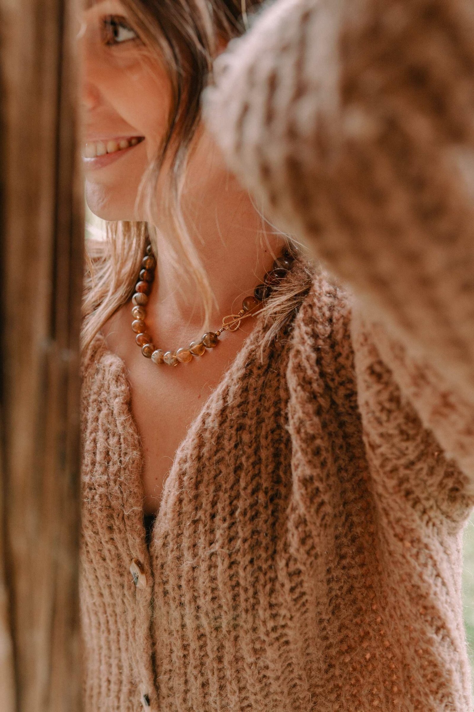 Collier Beynac – Marron : élégance naturelle et touche dorée