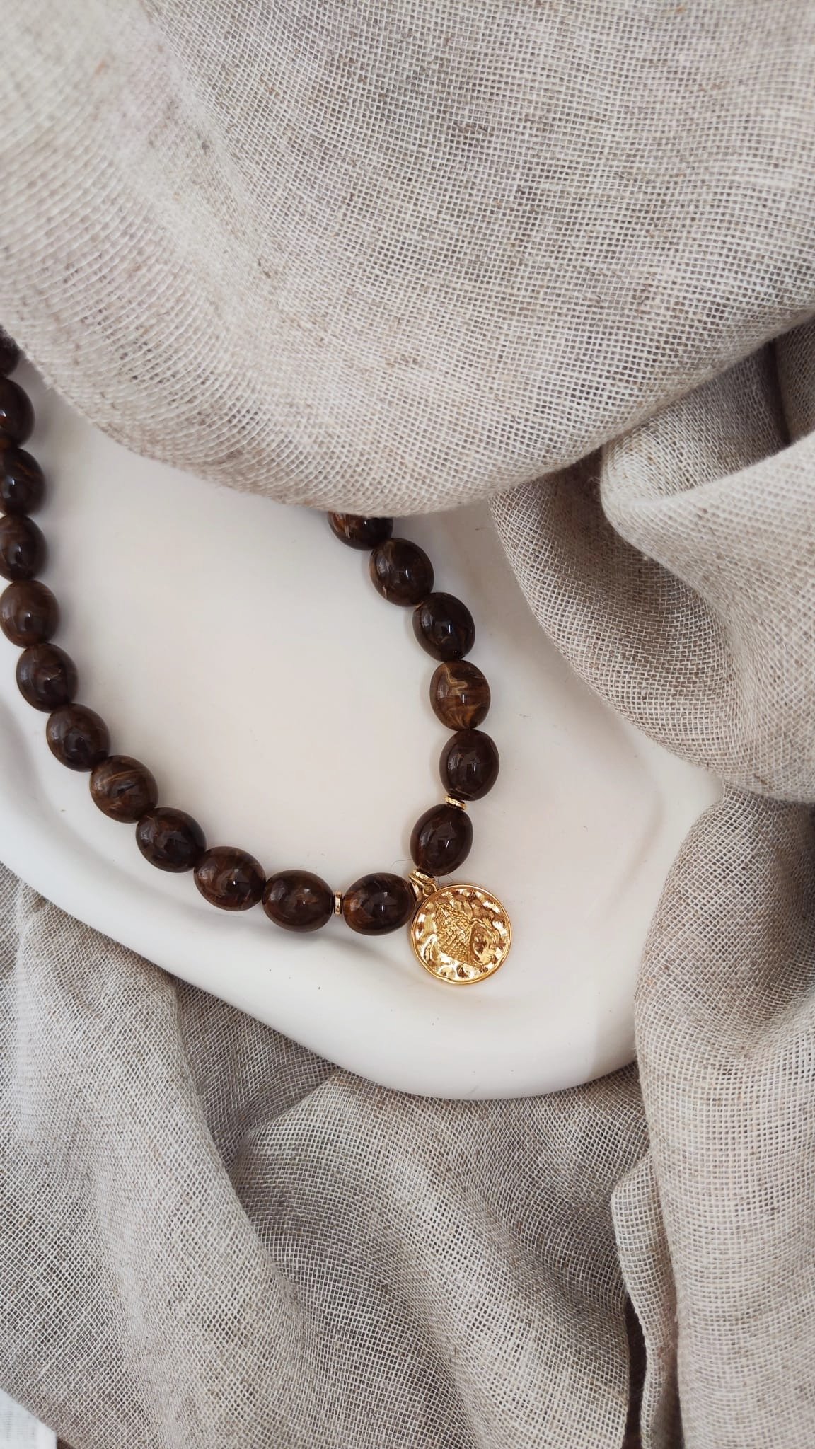 Le Collier Coolum incarne une élégance naturelle et personnalisable, pensée pour s’adapter à vos envies. Composé de perles aux nuances marron profondes et lumineuses, il se distingue par son pendentif interchangeable, pour un bijou unique qui vous ressemble.
