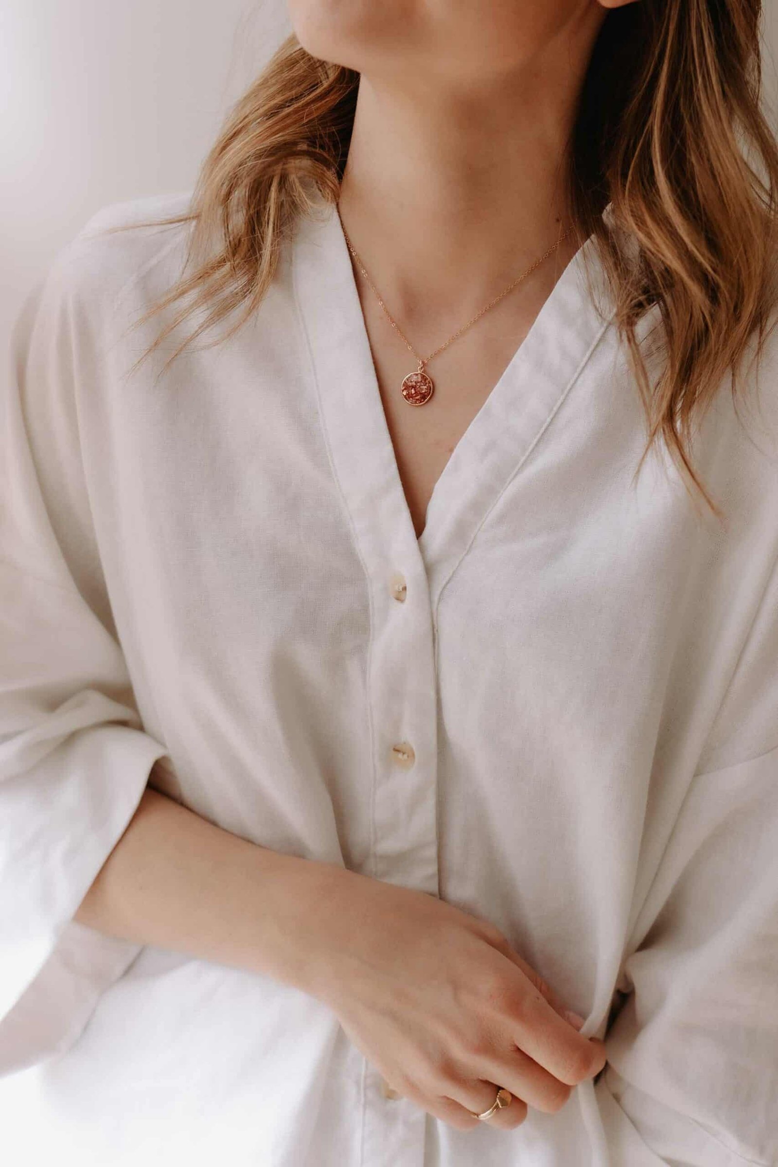 Ainsi, chaque collier est fabriqué à la commande dans mon atelier en Bretagne. Je prépare la résine avec soin, j’y intègre des éclats de verre et des pierres fines afin de créer des reflets subtils. Chaque coulée est différente, ce qui rend votre collier Paris Rosée absolument unique. Le gold filled, réputé pour sa durabilité et son éclat, confère à ce bijou une allure précieuse et intemporelle.