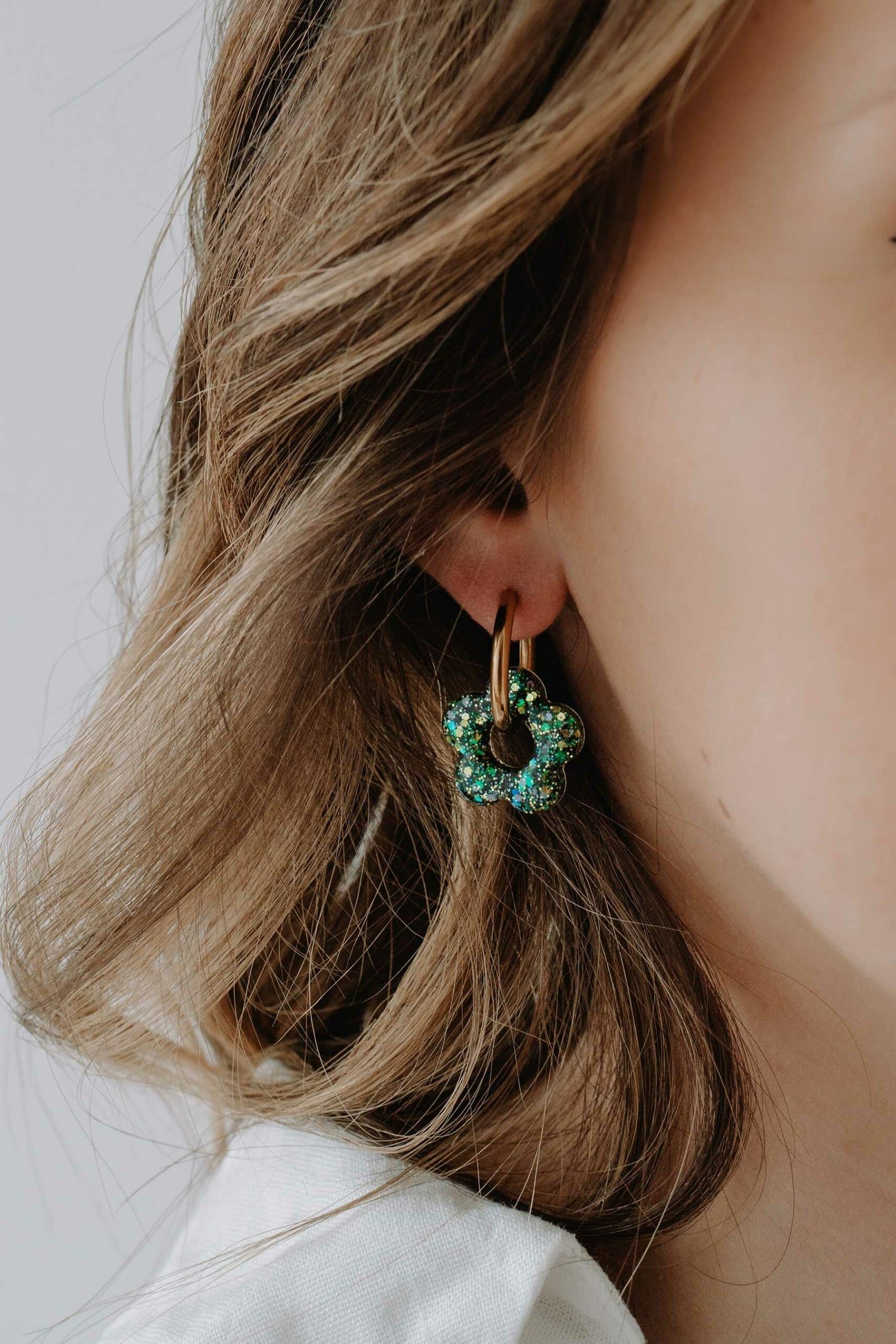 Les créoles Oia Artemisia incarnent une élégance naturelle et apaisante, inspirée des nuances végétales et des reflets dorés. Dès le premier regard, ces boucles d’oreilles séduisent par leur pampille fleur en résine faite main, mêlant des tons verts subtils à une touche lumineuse. Ainsi, elles apportent une note organique et raffinée à votre style, idéale pour celles qui aiment les bijoux à la fois doux et expressifs.
