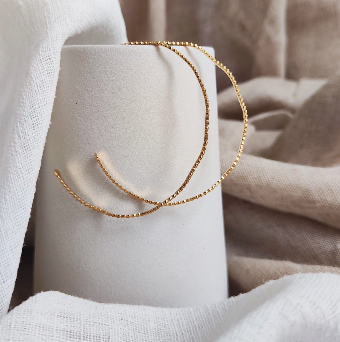 Sa forme en vague évoque le mouvement fluide de l’eau et confère au bijou une allure douce et organique. Ce détail subtil fait toute la différence et apporte une élégance naturelle.
